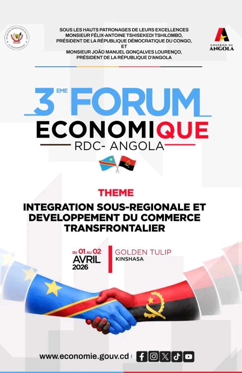 DIPLOMATIE RDC : 3e édition du forum économique Rdc-Angola prévu du 1er au 03 Avril Posted on: mars 23, 2026mars 23, 2026