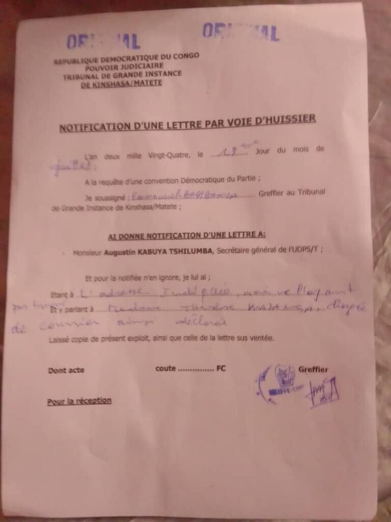 Augustin Kabuya, Secrétaire général de l’UDPS, fait face à une situation délicate suite à sa convocation à la commission de discipline du parti. Cette notification, transmise par un huissier, soulève des interrogations quant aux motifs et enjeux de cette décision. En tant que figure importante au sein de l’Union pour la Démocratie et le Progrès Social (UDPS), Kabuya se retrouve au cœur d’une crise interne qui pourrait avoir des répercussions sur l’avenir et l’unité du parti politique.