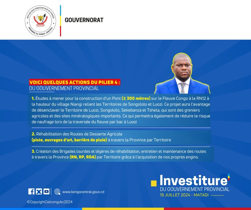 4. Aménagement du territoire et modernisation des infrastructures : Praticabilité des routes, voies fluviales, et gestion rationnelle de l’espace provincial.