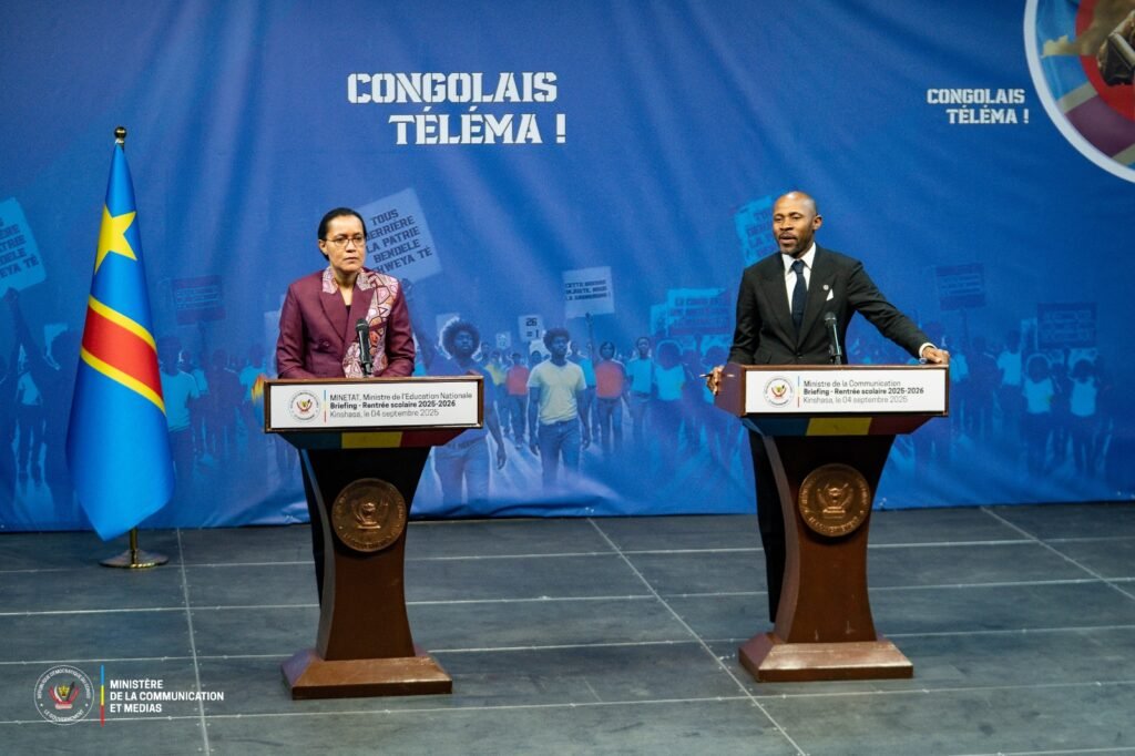 Ce jeudi 4 septembre 2025, au Studio Maman Angebi de la RTNC, un Special Briefing Presse était co-animé par la Ministre d’État de l’Éducation nationale et de la Nouvelle Citoyenneté, Raïssa Malu, et le Ministre de la Communication et des Médias, Porte-parole du Gouvernement, Patrick Muyaya. Cette rencontre intervenait seulement quatre jours après la rentrée des classes.