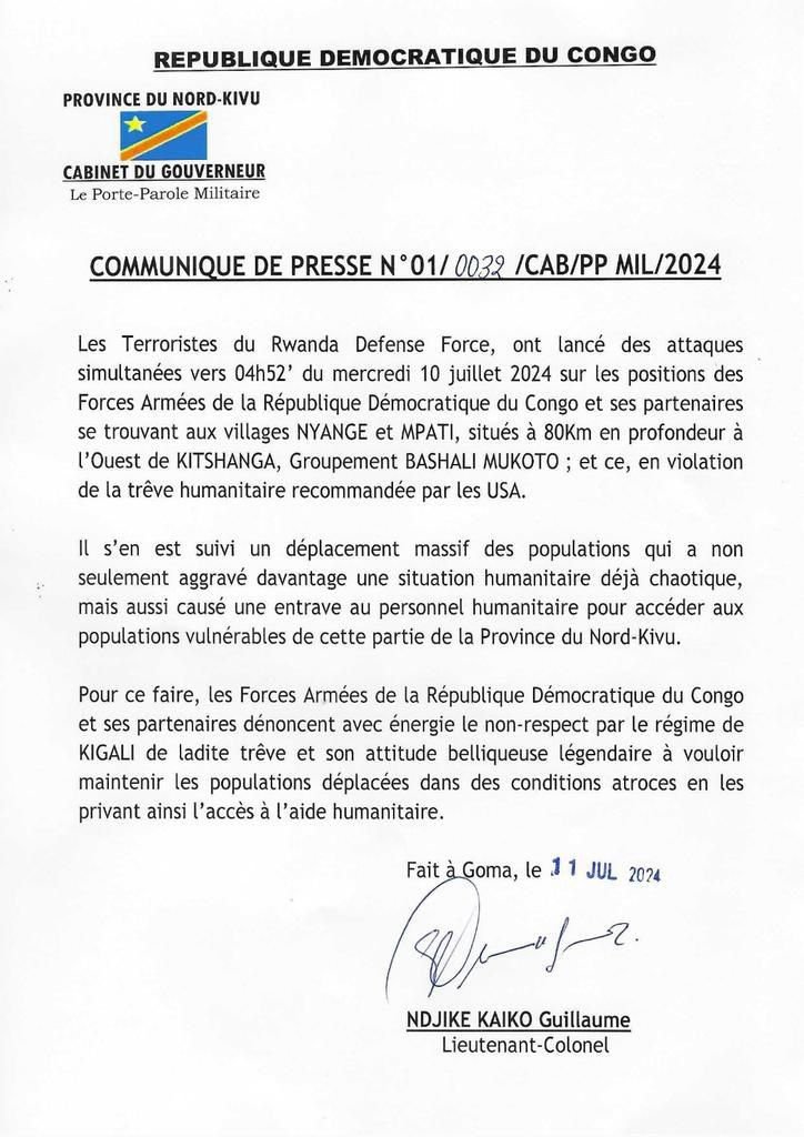 Malgré les recommandations des États-Unis en faveur d’une trêve humanitaire, les Forces de défense rwandaises (RDF) ont lancé des attaques simultanées à 4 h 52 contre les forces armées congolaises et leurs partenaires dans les villages de Nyange et Mpati, au Nord-Kivu. Ces actions ont entraîné des déplacements massifs de population, aggravant ainsi la crise humanitaire et entravant l’accès à l’aide.